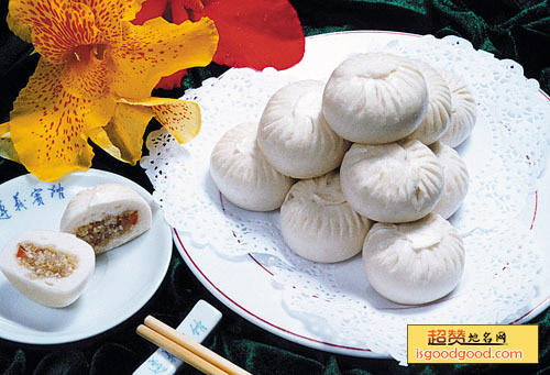 制作方法:蒸。先将肥膘肉煮熟,切成小丁,花生用油炸酥后,用滚筒压碎,芝麻炒香。三种馅料加入白糖拌匀成馅。面粉中加入老面及温水,和成发酵面团,待发好后加碱,揉匀揉光滑,搓成5厘米粗细的长条,揪成50克一个面剂,按扁揉成中间稍厚、边缘稍薄的锅底状圆皮,放入馅心,边包边捏褶皱收紧剂口成鸟笼状,最后拣入刷油的屉笼内。用旺火蒸约15分钟至熟即成。